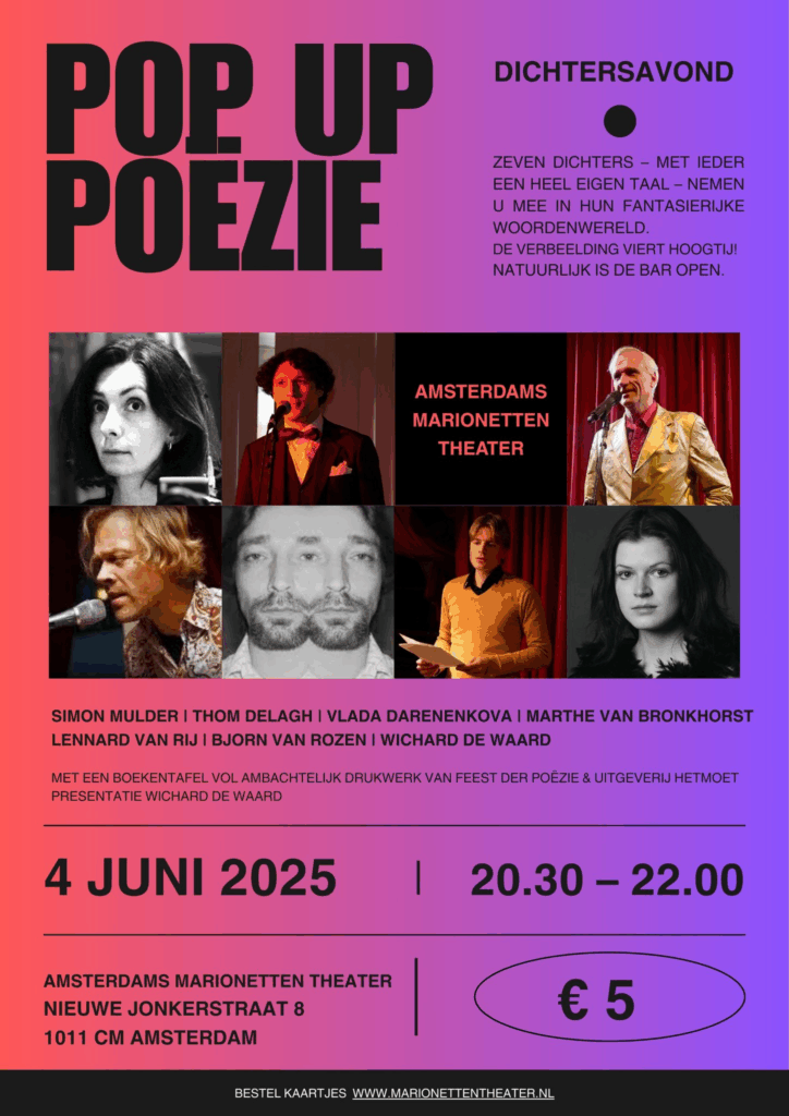 Dichtersavond op vrijdag 14 juni 2025 om 19.30